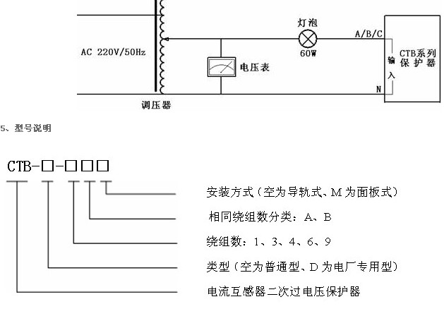 CTB些列過電壓保護(hù)器應(yīng)用于CT二次側(cè)的差動(dòng)繞組、過流繞組、測量繞組、母線保護(hù)繞組、備用繞組等。