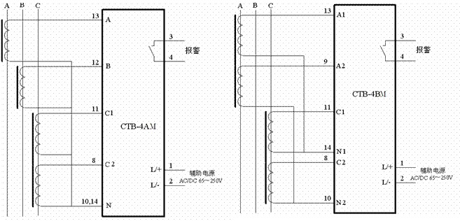 CTB系列過電壓保護(hù)器主要用于各種電流互感器CT二次側(cè)的異常過電壓保護(hù)。保護(hù)器接于二次繞組兩端,正常運(yùn)行時(shí)漏電極小,成高阻狀態(tài)。當(dāng)發(fā)生異常過電壓時(shí),保護(hù)器迅速動(dòng)作,短路電流互感器二次側(cè)繞組,發(fā)光二極管顯示故障部位,蜂鳴報(bào)警和繼電器報(bào)警閉合觸點(diǎn)輸出。當(dāng)故障排除后,按下“復(fù)位”按鈕,保護(hù)器又可重新投入正常運(yùn)行。