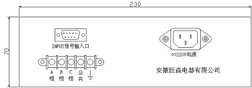 1.下圖為放電記錄儀后蓋板接口示意圖,安裝時(shí)首先在開關(guān)柜柜門上待安裝位置開一尺寸為:長(zhǎng)×高=232mm×72mm的安裝孔, 并用電鉆準(zhǔn)確打出四個(gè)大小為φ4的固定螺孔位;